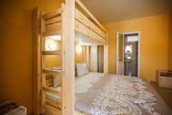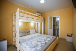 | Мебель: | односпальные или двуспальная кровати, шкаф, стулья, прикроватные тумбочки, стол, вешалка, зеркало, обеденная зона |