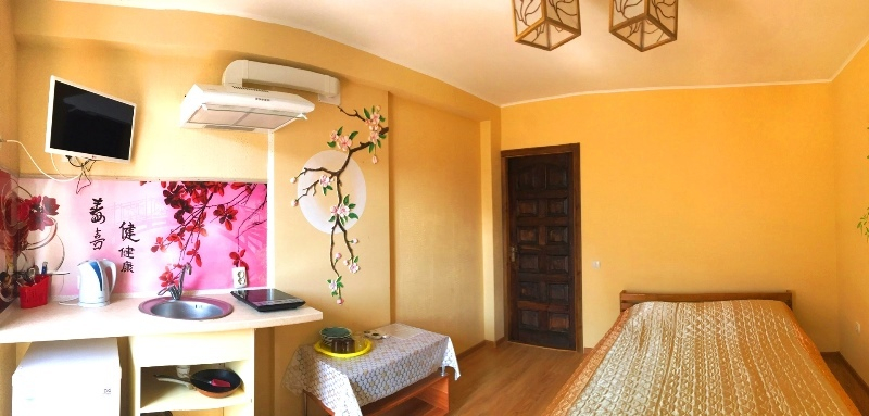 | Удобства: | кондиционер, телевизор, кабельное ТВ, холодильник, газовая печь, мойка, эл. чайник, посуда, интернет, фен (по требованию) |