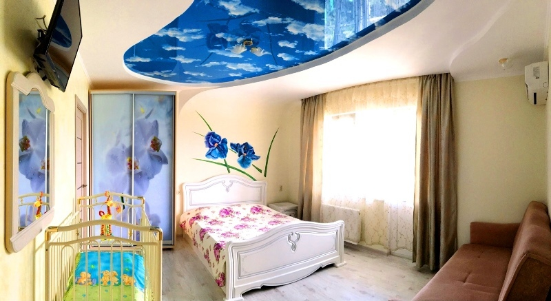 | Мебель: | двуспальная кровать, диван-кровать, шкаф, стулья, прикроватные тумбочки, стол, туалетный столик, прихожая, зеркало, обеденная зона, 2х-ярусная кровать |