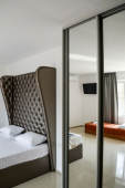 | Мебель: | двуспальная кровать, диван-кровать, шкаф, стулья, стол, зеркало |
