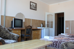 | Удобства: | кондиционер, телевизор, кабельное ТВ, холодильник, фен, сейф, эл. чайник, интернет, шампунь, гель для душа |