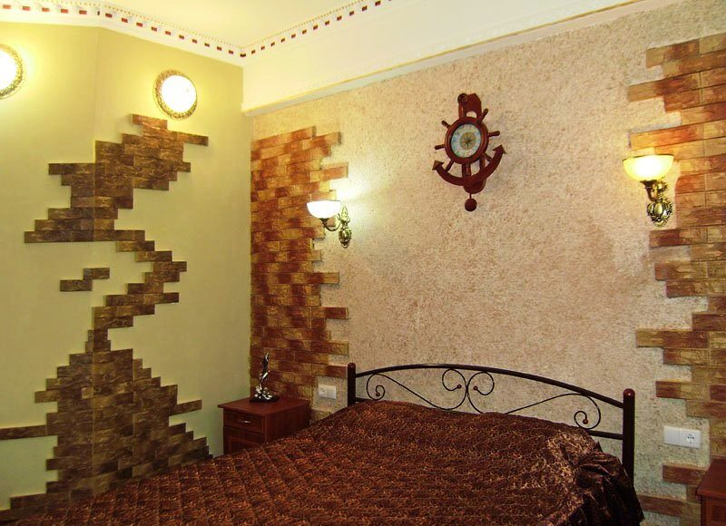 | Мебель: | односпальные или двуспальная кровати, кресло-кровать, шкаф, стулья, прикроватные тумбочки, туалетный столик, стол, комод, вешалка, зеркало |