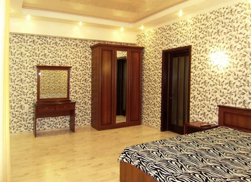 | Мебель: | двуспальная кровать, кресло-кровать, шкаф, стулья, прикроватные тумбочки, туалетный столик, стол, вешалка, зеркало |