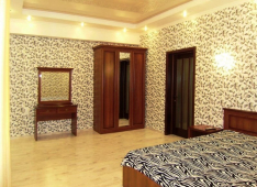 | Мебель: | двуспальная кровать, диван-кровать, кресло-кровать, шкаф, стулья, прикроватные тумбочки, туалетный столик, стол, комод, вешалка, зеркало |
