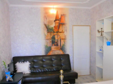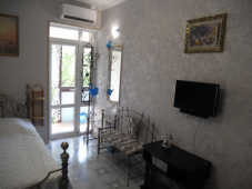 Дом класса "Люкс", рассчитанный на 2-3 человека, расположен в живописном месте г. Судак, на склоне горы Фирейной, в 300 метрах от моря и аквапарка. Дом общей площадью около 30 кв.м., имеет 1 комнату, кухню, санузел с душем и большой балкон. Около дома - небольшая площадка с мангалом. Интерьер дома сочетает в себе скромный стиль французского Прованса и изящный стиль Арт-Деко. Легкий аромат Франции чувствуется в резных подсвечниках, фарфоровых статуэтках и кованых предметах интерьера. В доме: бытовая техника (холодильник, электроплита, СВЧ печь, кондиционер, кабельное ТВ, чайник, утюг, фен, Wi-Fi интернет), посуда, постельное белье, полотенце, вода холодная и горячая постоянно. Трансфер: встречаем в аэропорту, на ж/д и автостанции в любое время суток.