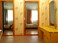| Мебель: | односпальные и двуспальная кровати, диван-кровать, стулья, пуфики, шкаф, прикроватные тумбочки, стол, туалетный столик, прихожая, вешалка, зеркало, кухонный гарнитур, обеденная зона |