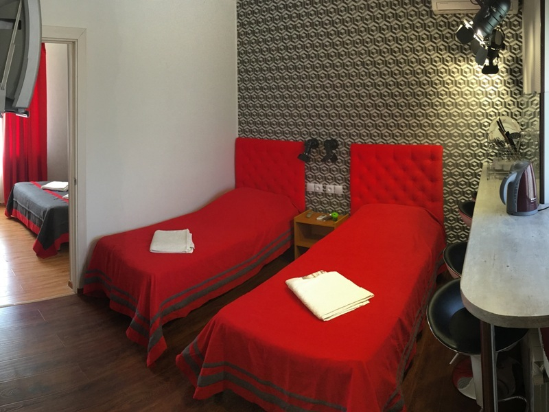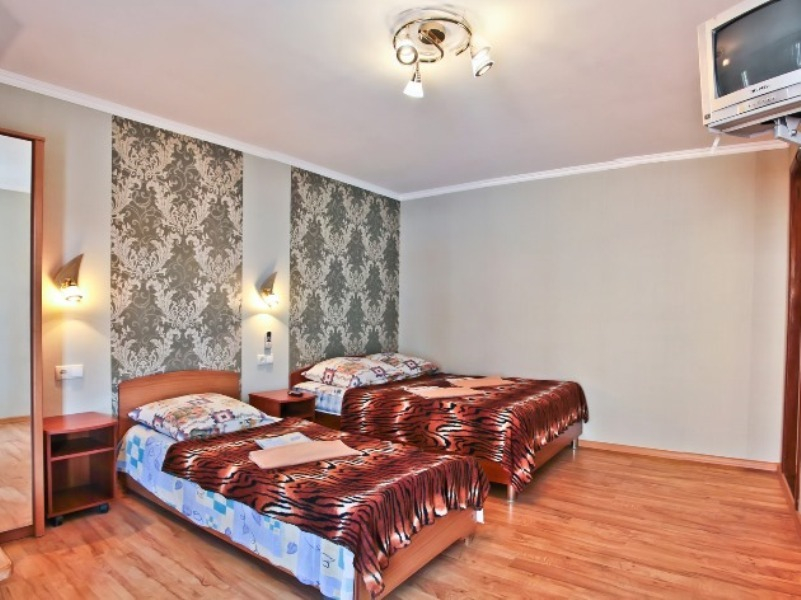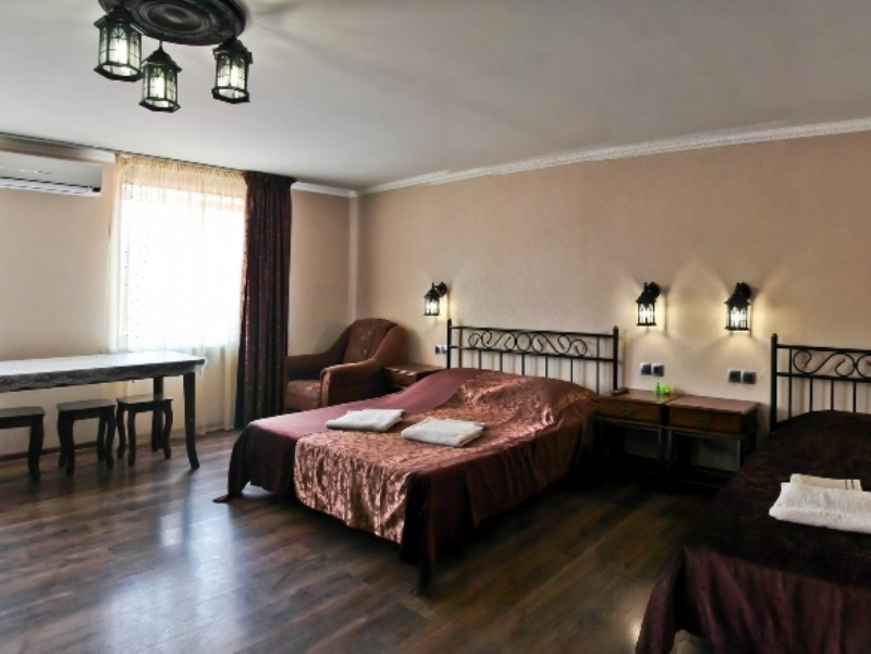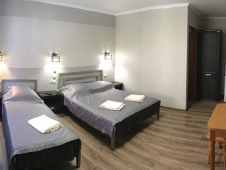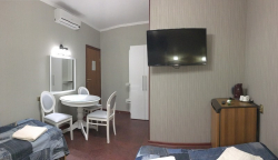 | Удобства: | сплит-система, телевизор, кабельное ТВ, интернет, холодильник, балкон (на 2-м этаже), индивидуальная зона перед номером (на 1-м этаже) |