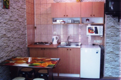 | Удобства: | кондиционер, телевизор, кабельное ТВ, интернет, холодильник, фен (по требованию), эл. чайник, СВЧ, посуда, балкон, зона отдыха около номера, электро (газ) плита |