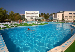 | К Вашим услугам (дополнительно) | - трансфер (платно) - стиральная машина - Wi-Fi интернет - 5 бассейнов (детские и взрослые) - 4 детские площадки - футбольное поле - теннисный корт - кафе на территории - амфитеатр - зеленый двор - беседка - охраняемая закрытая территория - гладильная + утюг - детская анимация - возможность пользования индивидуальным пляжем |