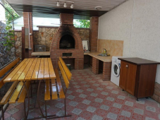 | К Вашим услугам (дополнительно) | - трансфер (платно) - стиральная машина (платно) - Wi-Fi интернет - мангал - барбекю - детская площадка - зеленый двор - беседка - гладильная + утюг - кабельное ТВ |