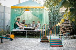 | К Вашим услугам (дополнительно) | - трансфер (платно) - стиральная машинка (платно) - Wi-Fi интернет - экскурсии (платно) - мангал - барбекю - детская площадка - зеленый двор - беседка - гладильная + утюг - СВЧ - спутниковое ТВ |