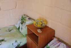 | Мебель: | односпальные или двуспальная кровати, вешалка, зеркало |