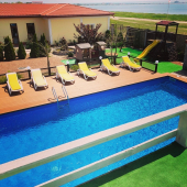| К Вашим услугам (дополнительно) | - трансфер (платно) - прачечная (платно) - стиральная машина - Wi-Fi интернет - экскурсии (платно) - бассейн - мангал - барбекю - детская площадка - зеленый двор - беседка - гладильная + утюг - СВЧ - спутниковое ТВ |