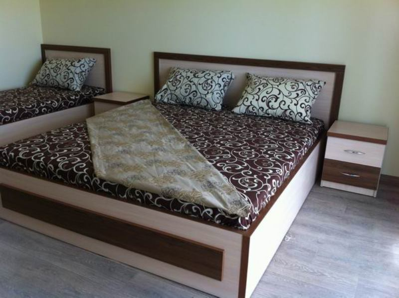 | Мебель: | односпальные или двуспальная кровати, шкаф, стулья, прикроватные тумбочки, журнальный столик, стол, вешалка, зеркало |