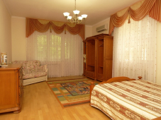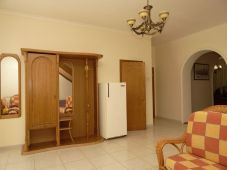 | Мебель: | односпальные и двуспальные кровати, диван-кровать, кресло, стулья, шкаф, прикроватные тумбочки, туалетный столик, вешалка, зеркало, кухонный гарнитур, обеденная зона, лоджия |