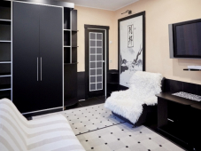 | Мебель: | односпальные и двуспальная кровати, пуфики, шкаф, стулья, прикроватные тумбочки, журнальный столик, стол, прихожая, вешалка, зеркало |