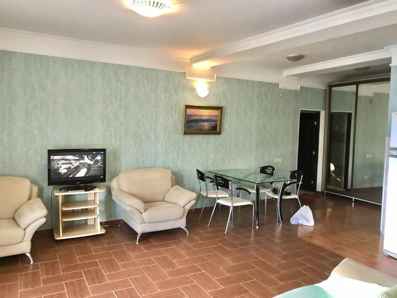 | Удобства: | кондиционер, холодильник, телевизор, интернет, балкон со столиком и стульями с панорамным видом на море, стиральная машина, мангал |