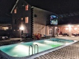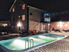 | К Вашим услугам (дополнительно) | - трансфер (платно) - стиральная машинка (платно) - сейф (у администратора) - бассейн - мангал во дворе - детская площадка - зеленый двор - беседка - гладильная + утюг - СВЧ (на кухне) - спутниковое ТВ - домашний кинотеатр на улице |