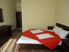| Мебель: | двуспальная кровать, диван-кровать, шкаф, стулья, прикроватные тумбочки, журнальный столик, стол, вешалка, зеркало |
