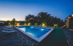 - современный бассейн 10х6 м с шезлонгами для загара