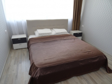 | Мебель: | двуспальная кровать, диван-кровать, стулья, шкаф, прикроватные тумбочки, журнальный столик, туалетный столик, прихожая, вешалка, зеркало |