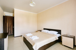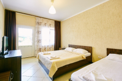 20 номеров-стандарт 21кв. 2х-3х местное размещение. Вномере: двуспальная кровать+односпальная кровать(в трехместном), санузел + душ, сплит-система, спутниковое ТВ с ЖК-телевизором, WI-FI интернет, мини-холодильник, общая терраса-балкон на 2 этаже и индивидуальная на 1этаже;