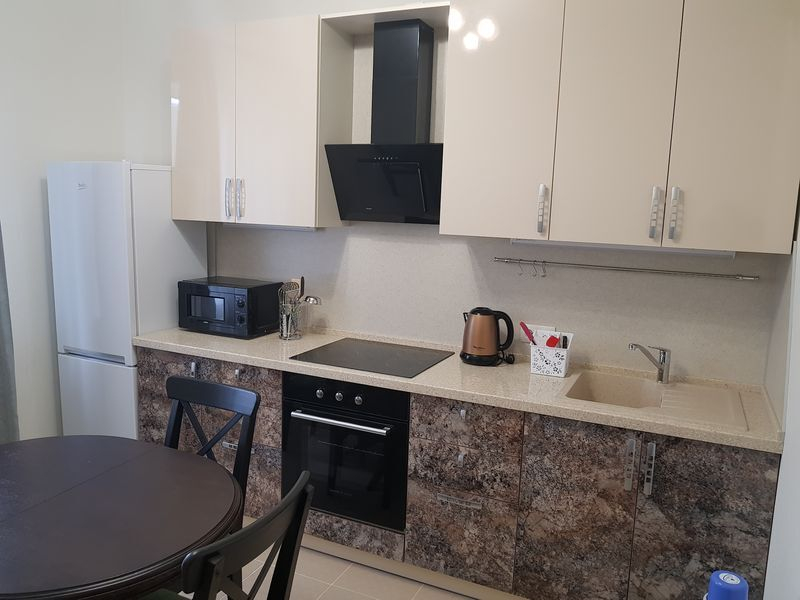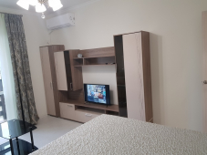 | Удобства: | кондиционер, холодильник, телевизор, стиральная машина, эл. плита с духовкой, вытяжка, водонагреватель, СВЧ, эл. чайник, посуда, фен, балкон, гладильная доска, пылесос |
