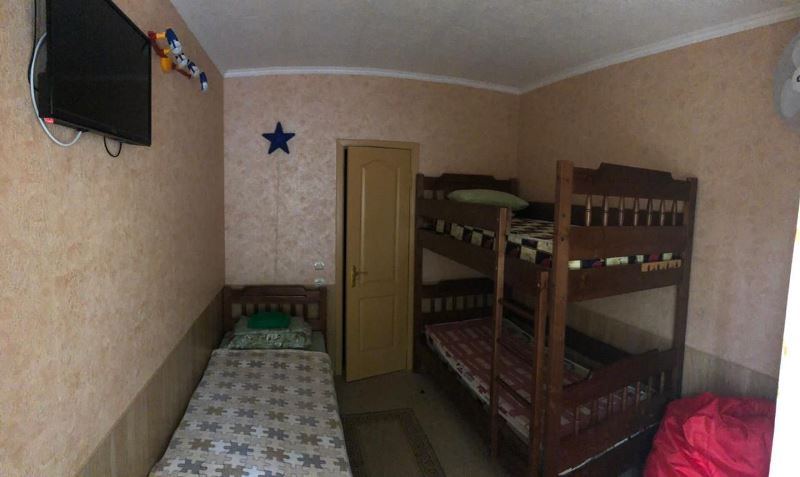 В доме, площадью 60 кв.м, 2 двуспальные кровати, 1 односпальная и 2 детские кровати, сплит-системы, вентиляторы, телевизоры, холодильники, фен, интернет, три санузла. Смена белья и полотенец по требованию. Стиральная машинка за дополнительную плату.