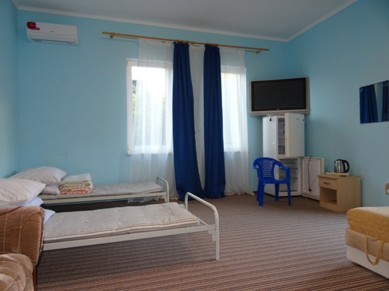 | Мебель: | односпальные кровати, диван-кровать, стулья, прикроватные тумбочки, комод, вешалка, зеркало |