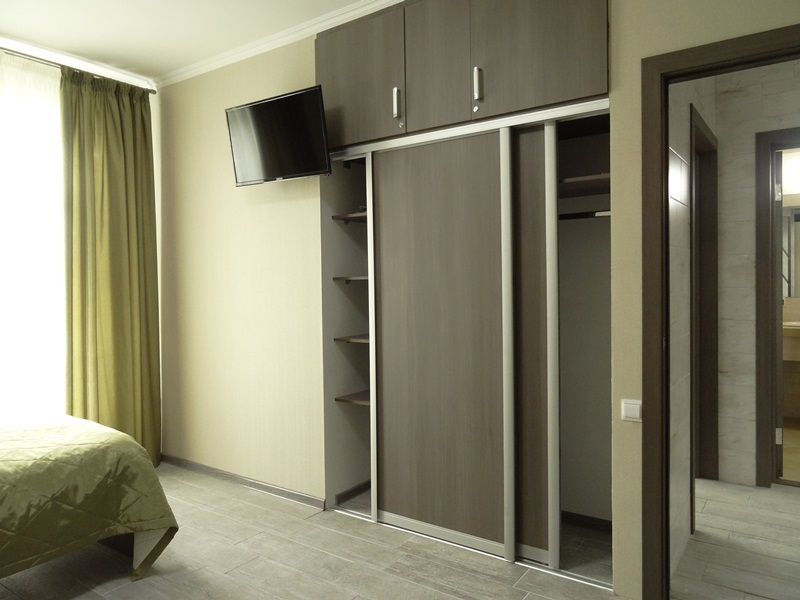 | Мебель: | односпальные или двуспальная кровати, стулья, прикроватные тумбочки, вешалка, зеркало |