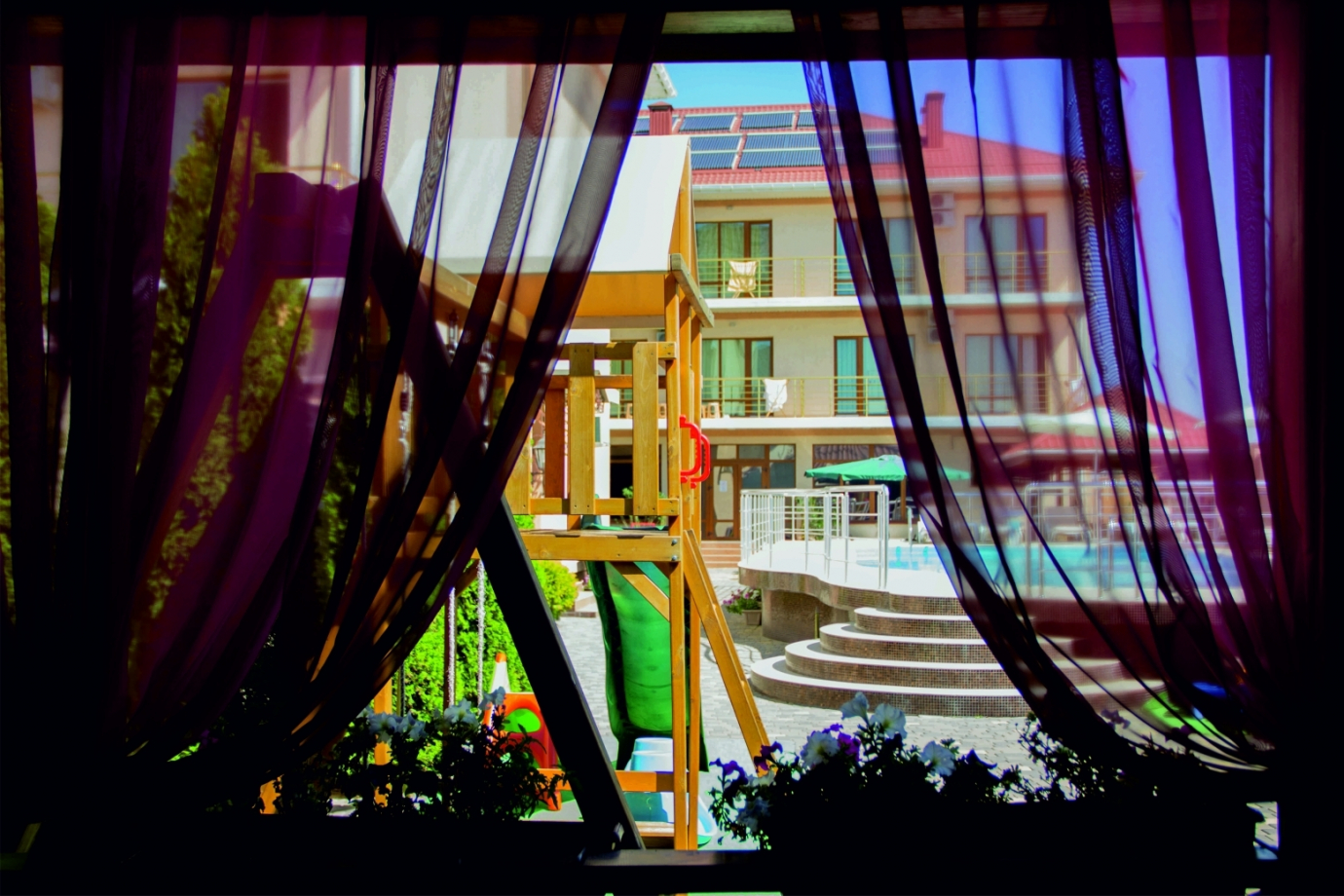 | К Вашим услугам (дополнительно) | Услуги, включенные в стоимость проживания. - Завтраки; - Бассейн с отсеком для детей; - Парковка; - Детская площадка; - WI-FI В отеле предоставляются бонусы: - Поздравления именинникам, молодоженам; - Скидки на проживание при повторном посещении отеля. Услуги за дополнительную плату: - Услуги ресторана (обеды, ужины); - Услуги коктейль-бара у бассейна; - Проведение банкетов, фуршетов; - Трансфер из аэропорта и автостанций до отеля; - Организация экскурсионных поездок по Крыму; - Стирка, глажка. |