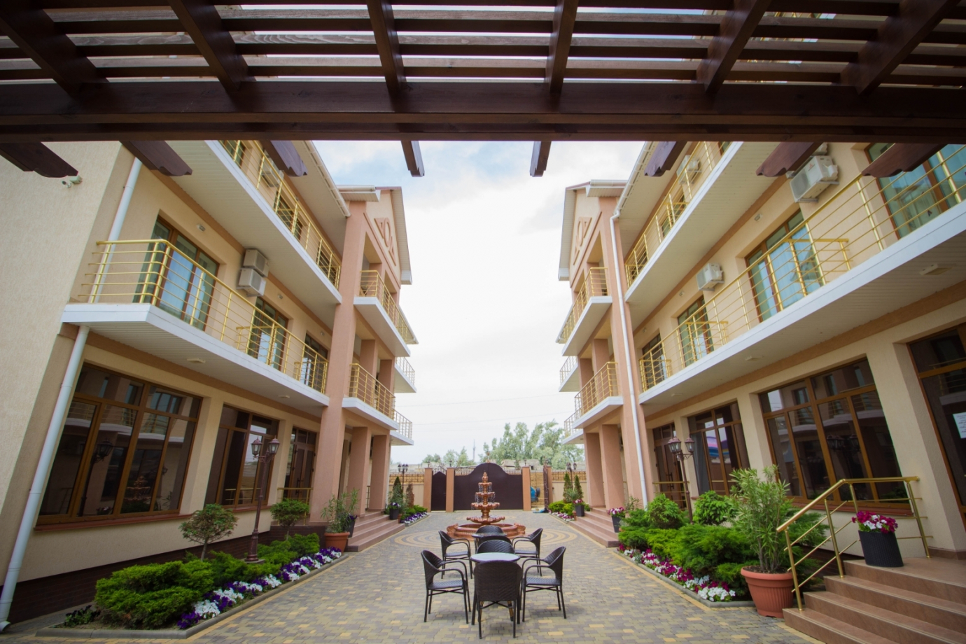 | Расстояния | Находится в поселке Приморское в 2 км от города Евпатория, на первой береговой линии в 150 м. от моря, а также в 150 м. от одного из самых больших аквапарков Крыма Банановая республика. Отель находится в экологически чистом уголке Крыма, здесь имеются все условия для комфортабельного отдыхав любоевремя года. Из Симферополя вы доберётесь в наш отель за 30-40 минут. |