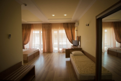 | Инфо: | Номера состоят из 2 спальных комнат и 1 ванной комнаты. В номерах – холодильник (мини-бар), спутниковое телевидение, телевизионные каналы, WI-FI интернет, кондиционер, сейф, картины, шкаф-купе с зеркалами. Паркетное покрытие. В ванной комнате – душевая кабина, туалет, туалетное зеркало, фен, предметы гигиены. Индивидуальные балконы, оснащенные столиками и стульями. |