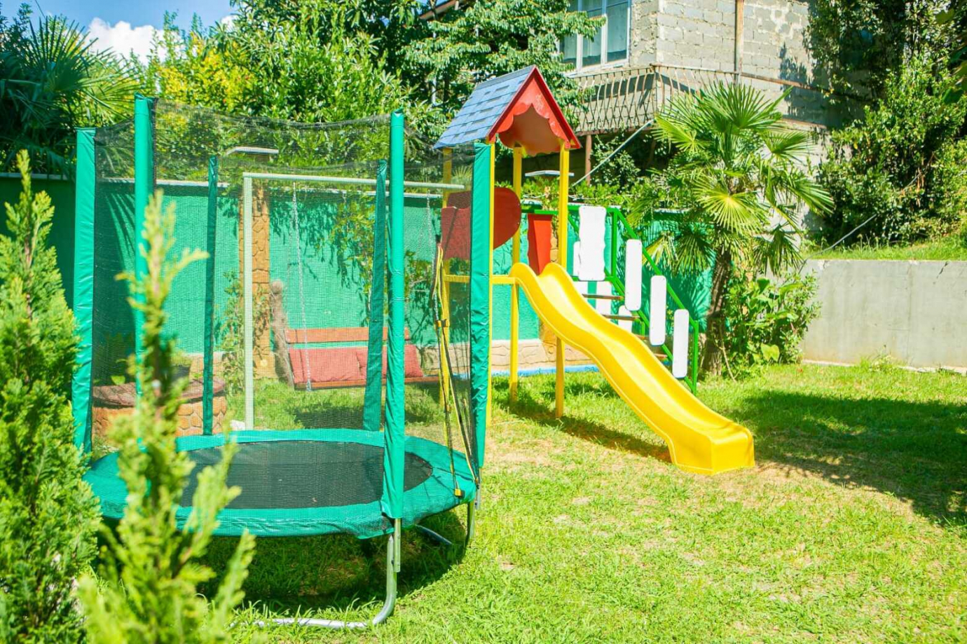 | К Вашим услугам (дополнительно) | Для отдыхающих на автомобиле имеется парковка на территории на 5 авто (по предварительной договоренности). Организуем трансфер: С границы в Абхазии,Также по договоренности с Аэропорт и Ж.Д Вокзал Адлер! В непосредственной близости от гостевого дома расположен центр поселка, всего 7 минут пешком; Сельский рынок с продукцией местных фермеров (молоко, сыр, творог и т.д., сезонные овощи и фрукты) 5 минут пешком. Рядом множество магазинов, кафе, аптеки. Зеленый Парк с детской площадкой. Зеленый, уютный двор с обилием южных экзотических растений и цветов, спускающийся террасами, места для отдыха в тени, мангал, беседка. |