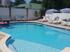 На территории гостевого дома расположен плавательный бассейн, который удобен как для взрослых, так и для маленьких детей. В вечернее время бассейн оснащен очень красивой светодиодной подсветкой. Также на территории имеется мангал для приготовления шашлыков и очень много столиков для отдыха около бассейна. Возле бассейна имеются лежаки и выдаются пляжные полотенца.