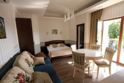 Предлагаем для отдыха отель «Оазис–Юг», который располагает 11 номерами, начиная от 2х-местных номеров класса люкс и заканчивая 4х-местными апартаментами класса De Lux. В отеле 5 номеров с индивидуальными кухнями, все номера кроме одного имеют собственные балконы. На территории отеля имеется летняя кухня со всеми необходимыми принадлежностями, а также кухня-столовая. Отель расположен в самом популярном месте Геленджика на улице Красногвардейской, в районе Толстого мыса, где море наиболее чистое. Время до пляжа занимает средней походкой 4-5 минут и в тоже время на необходимом расстоянии, чтобы не было слышно громкой музыки с Набережной. В 5 минутах ходьбы имеется вся необходимая инфраструктура, Сбербанк, продуктовый рынок, круглосуточный гастроном.