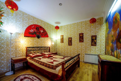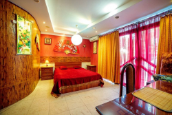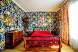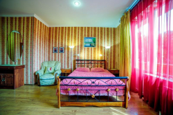 | Мебель: | двуспальная кровать, раскладной диван, шкаф, прикроватные тумбочки, стулья, столик, зеркало |