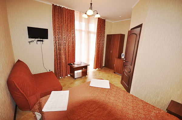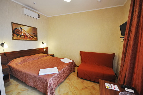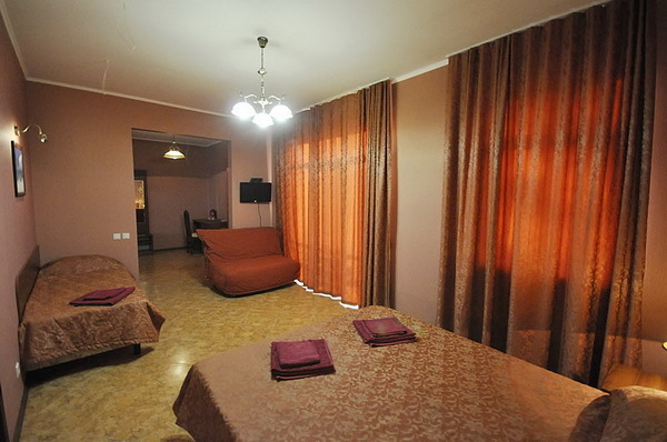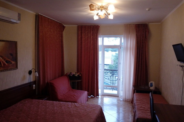 | Удобства: | сплит-система, телевизор, сейф, холодильник, фен и бесплатные туалетно-косметические принадлежности, балкон, Wi-Fi интернет |