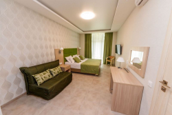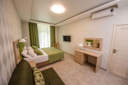| Удобства: | сплит-система, холодильник, цифровое ТВ, Wi-Fi интернет, фен, сейф, балкон, уличная мебель |