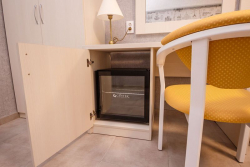 | Мебель: | односпальные или двуспальная кровати, диван-кровать, стол, стулья, шкаф, прикроватные тумбочки, журнальный столик, туалетный столик, прихожая, вешалка, зеркало |