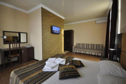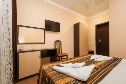 Светлые номера с кондиционером, оформлены в классическом стиле и выдержаны в теплых тонах. В каждом номере есть телевизор с плоским экраном, холодильник и собственная ванная комната.