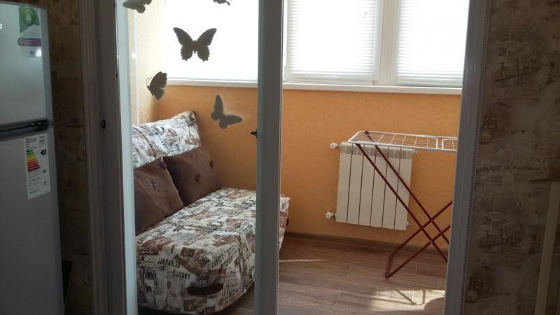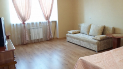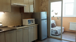 В квартире можно комфортно отдохнуть двоим, но и семье тоже будет удобно, потому что квартира большая 50 кв.м., также на закрытой лоджии имеется диван, где также можно расположиться отдельно от всех, так как арка-ширма полностью закрывается.