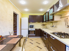 | Мебель: | двуспальная кровать, диван-кровать, кресла, шкаф, прикроватные тумбочки, стол, комод, прихожая, вешалка, зеркало, кухонный гарнитур, обеденная зона |