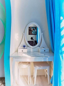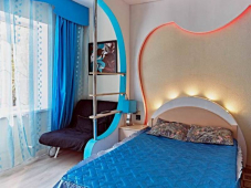 | Мебель: | односпальные и двуспальная кровати, кресло-кровать, шкаф, стулья, прикроватные тумбочки, туалетный столик, прихожая, вешалка, зеркало, кухонный гарнитур, обеденная зона |