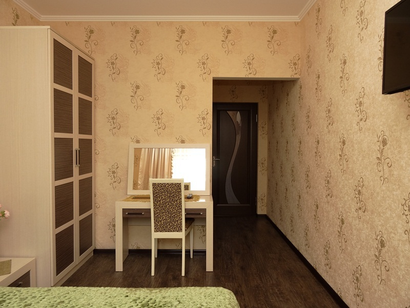 | Мебель: | односпальные или двуспальная кровати, кресло-кровать, шкаф, стулья, прикроватные тумбочки, туалетный столик, зеркало |