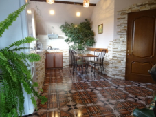 Гостевой дом "Идилия", с видом на море, расположен в тихом уютном районе Геленджика – "Голубой Бухте", в 15 минутах ходьбы от галечного пляжа Черного моря. Здесь действительно дивное, самое чистое море удивительного синего цвета. Гостевой дом удален от проезжей части дороги, поэтому гостям обеспечены тишина и спокойствие, а также свежий морской воздух, и, конечно же, уютная домашняя атмосфера. Для размещения предлагаем 4 просторных, светлых номера со всеми удобствами и кухнями для самостоятельного питания. На все номера имеется 1 большая терраса, где можно выпить чашечку кофе и полюбоваться видом на море. Для гостей, приехавших к нам в первой половине июня СУПЕРпредложение!!! Бесплатное разовое посещение бани и 20% скидка на джипинг. К услугам отдыхающих: озелененный дворик, беседка и мангал для приготовления шашлыка, удобная качеля для отдыха, прудик с рыбками., бесплатная парковка на 4-6 машин, wi-fi интернет. Холодная и горячая вода - круглосуточно. За дополнительную плату возможно посещение нашей баньки на дровах с дубовыми веничками и ароматным чаем из горных трав. Организуем незабываемые джиппинг-экскурсии к водопадам и дольменам. Максимально-насыщенная программа не оставит места для скуки и позволит в полной мере оценить красоты Черноморья. Будем очень рады обеспечить Вам домашний уют и радушный приём. Уверены, что вам очень понравится!