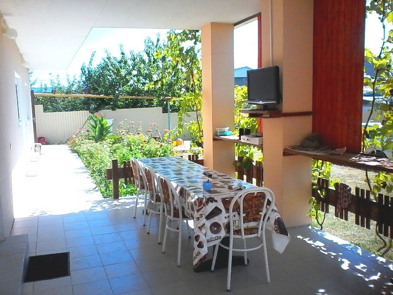 | К Вашим услугам (дополнительно) | - трансфер (платно) - холодная и горячая вода постоянно - стиральная машинка (платно) - прогулки на катере (платно) - организация экскурсий - гладильная + утюг - рыбалка (платно) - летняя беседка - мангал во дворе - спутниковое ТВ - СВЧ на кухне - зеленый двор - бассейн - лежаки |
