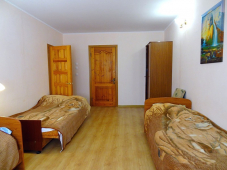 | Мебель: | односпальные кровати, диван-кровать, кресла, стулья, шкаф, стол, вешалка, зеркало, кухонный гарнитур, обеденная зона |