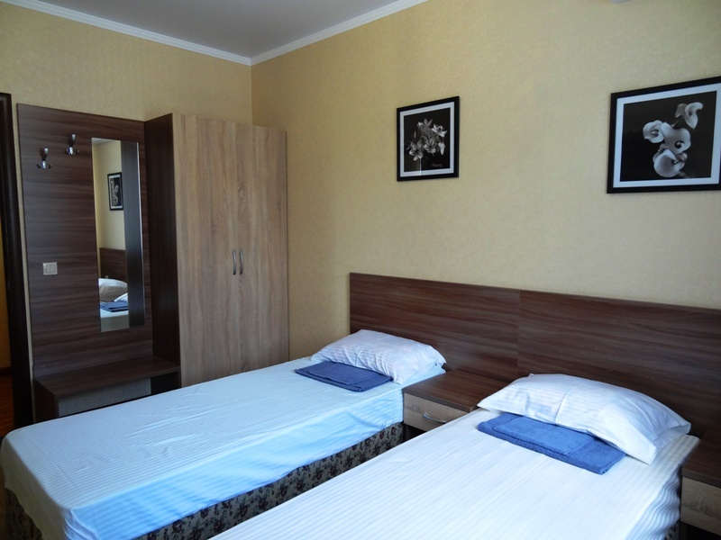 | Мебель: | односпальные кровати, шкаф, прикроватные тумбочки, вешалка, зеркало |