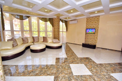 Еще один из многочисленных плюсов гостевого дома "Фортуна" - большая благоустроенная территория. Огромный бассейн 7х14 метров с подогревом, современной системой очистки воды, двумя зонами - детской и взрослой, водопадом. Во взрослой зоне бассейна есть гидромассаж, а в детской зоне аэромассаж - брызги фонтана с пузырьками воздуха приводят в восторг детишек. Для маленьких гостей от 3 до 16 лет есть безопасная, современная детская площадка с множеством игровых элементов. Зона отдыха с шезлонгами, столиками под зонтами, мангалом и прохладительными напитками во внутреннем дворе. Есть кухня для самостоятельного приготовления пищи, оборудованная всем необходимым, а так же собственная столовая на территории с питанием по заказному меню, профессиональные повара которой порадуют Вас кулинарными изысками. Хозяева гостевого дома "Фортуна" позаботились об отсутствии перебоев с горячей и холодной водой. Для гостей, приехавших на отдых на своем автомобиле имеется автостоянка во дворе под видеонаблюдением. Работает беспроводной интернет по технологии Wi-Fi.
